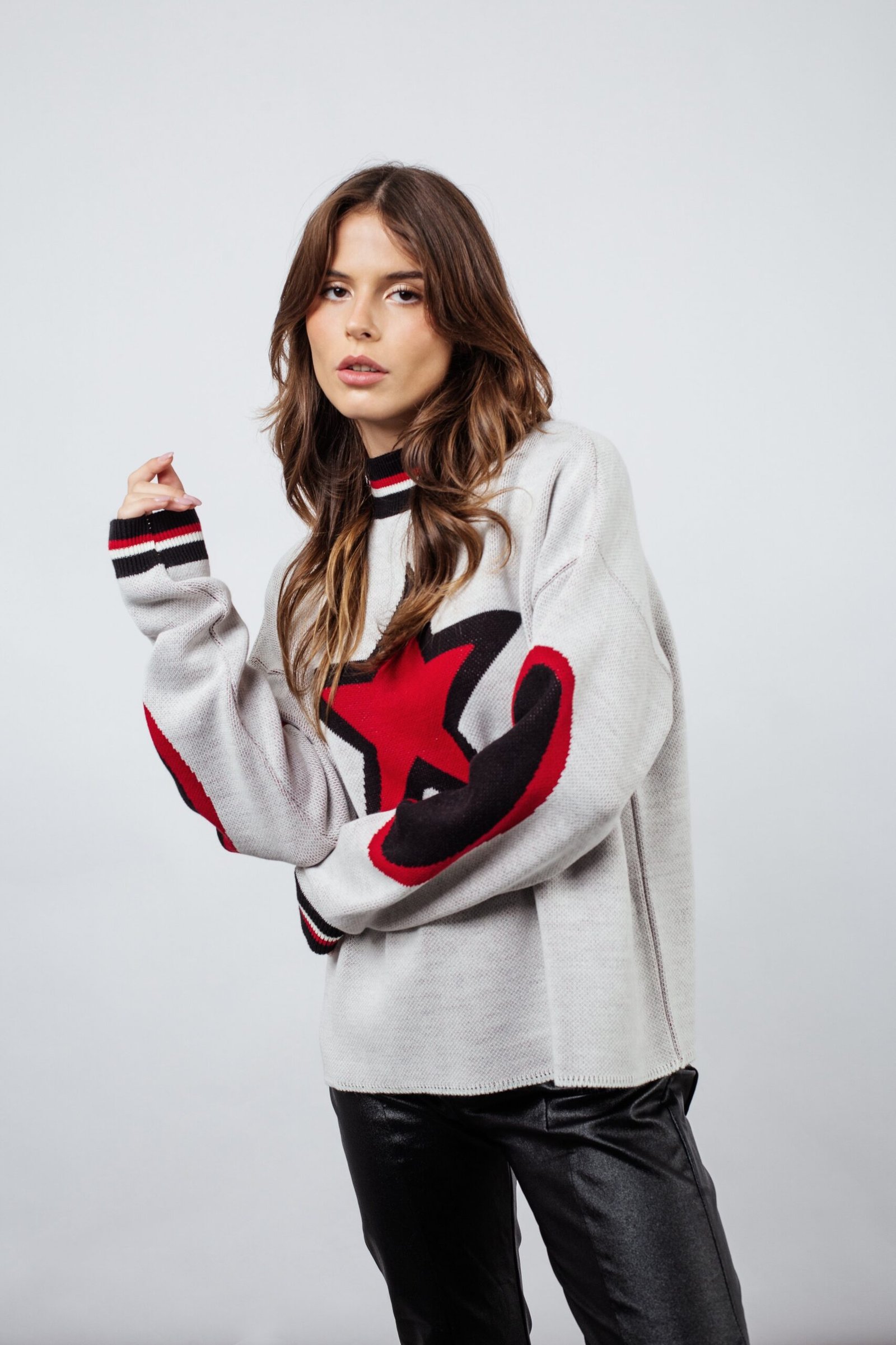 El buzo Anais es tejido en lana con viscosa y poliester. Con un diseño en jacquard muy nuestro, en los colores de la temporada.