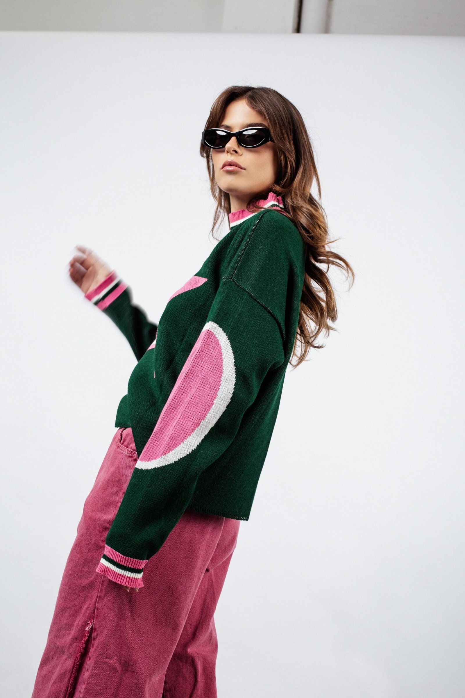 El buzo Anais es tejido en lana con viscosa y poliester. Con un diseño en jacquard muy nuestro, en los colores de la temporada.