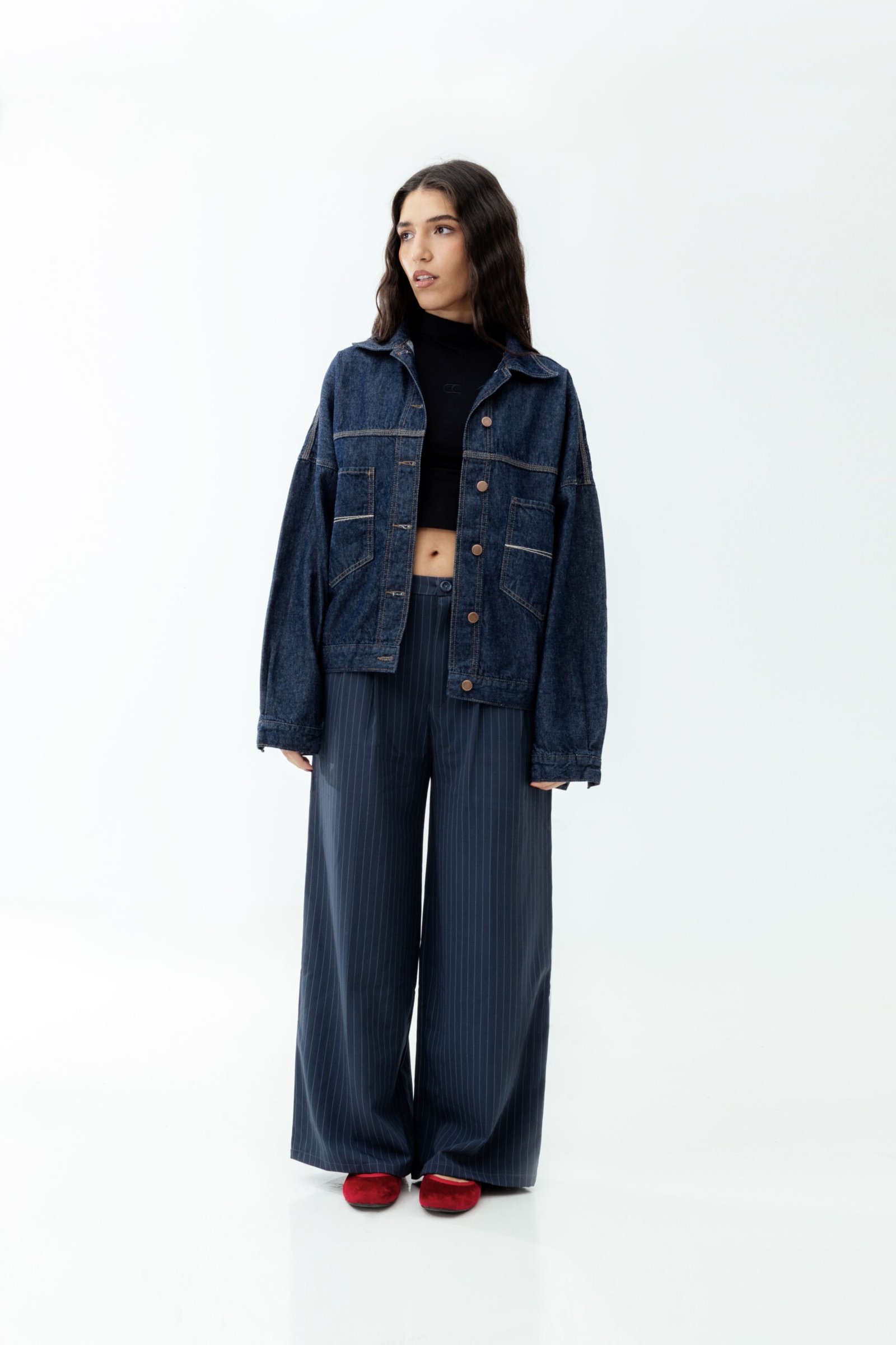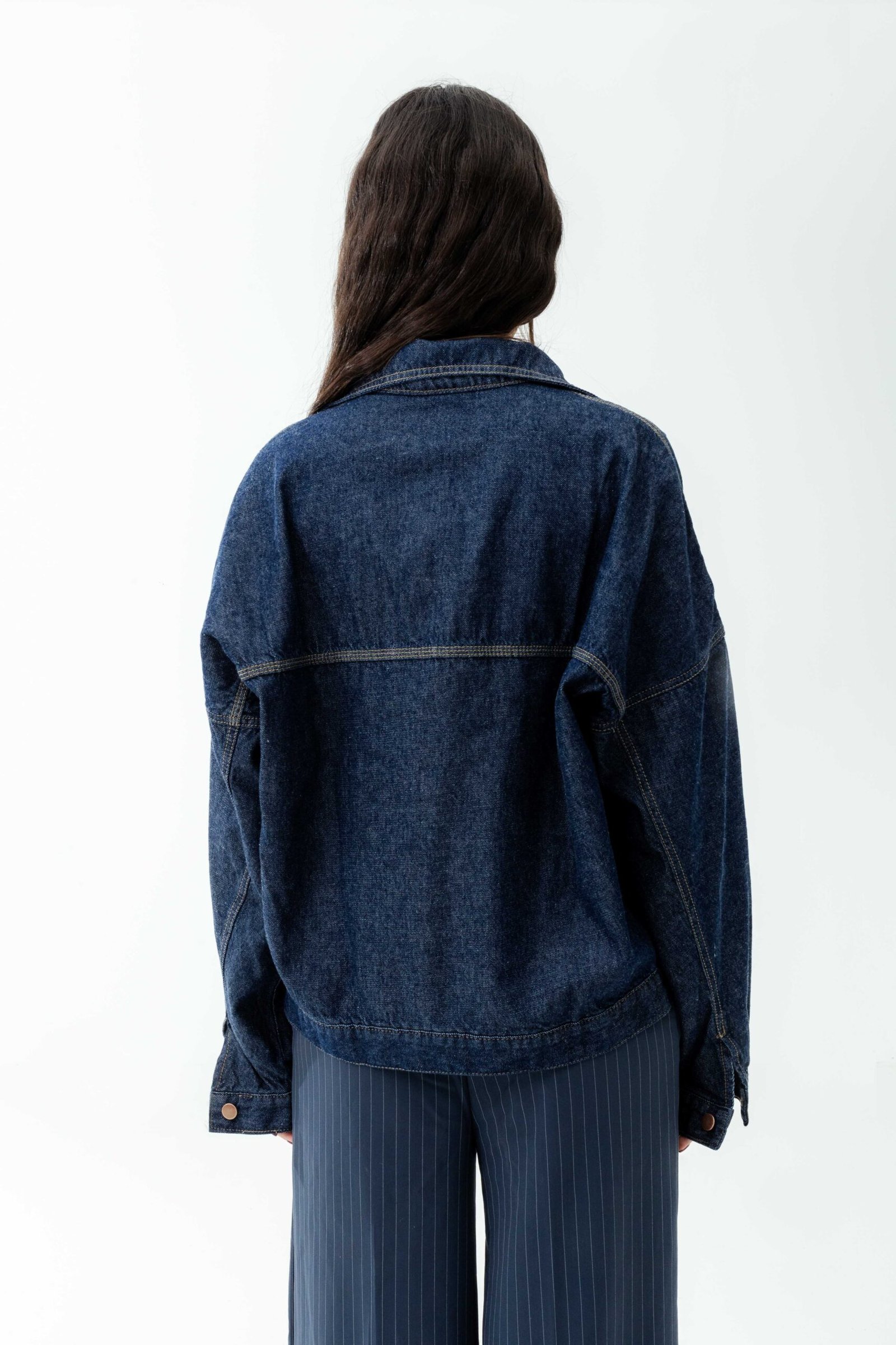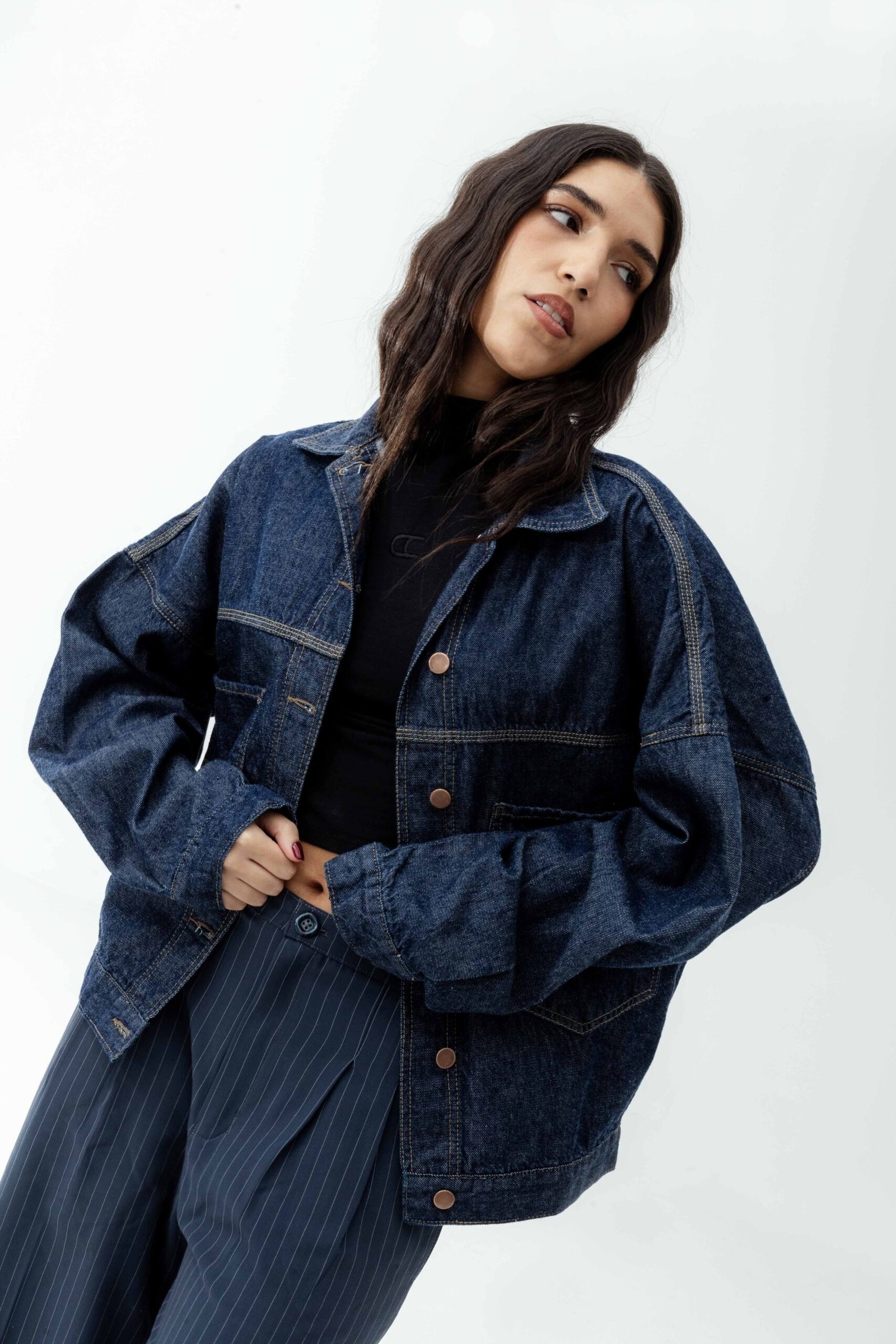 La campera Reverse es una tracker jacket reversionada, tiene un corte boxy, bolsillos en delantera y lavado vintage. Corte oversize, disponible en L y XL.