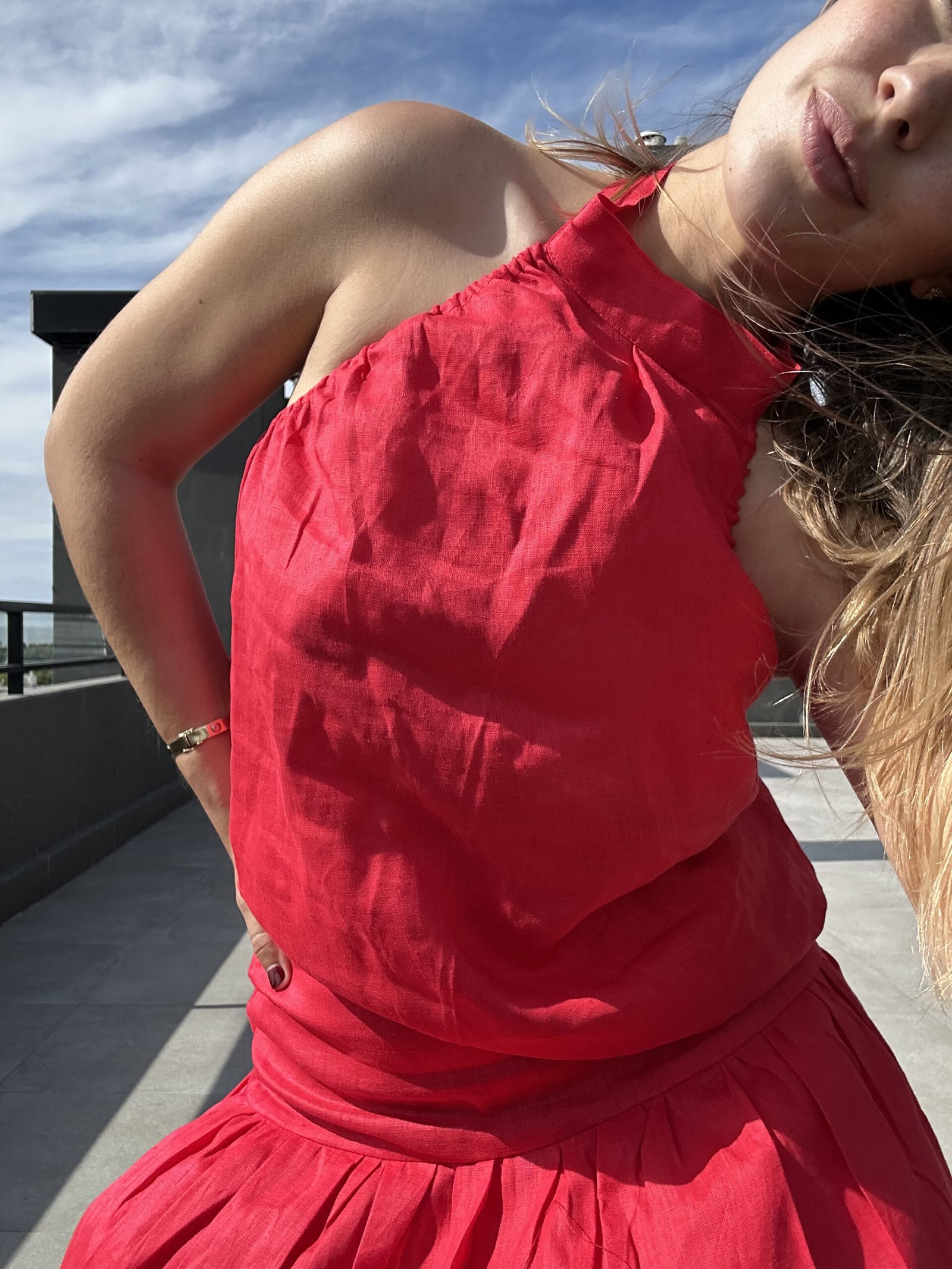 El top Brisa es una blusa que va a agregarle muuucha elegancia a tus looks. Tiene cuello halter, elastico en costados para agarrar bien y que no se vea nada. Espalda abierta y abotonado en cuello. Realizado en lino 100%, una fibra de extrema duración.